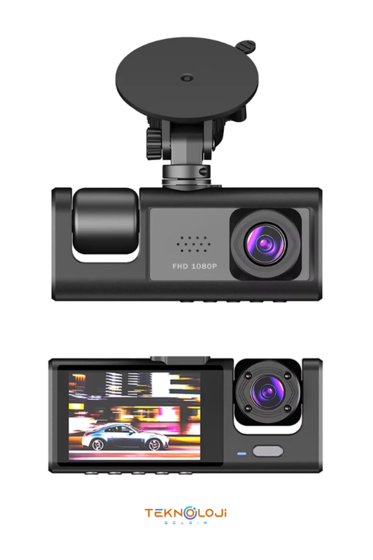 1080P Dash Cam Full Hd Araç içi Kamera Ön Arka ve İç Kayıt 3 Kamera Gece Görüşlü G Sensör Geniş Açı