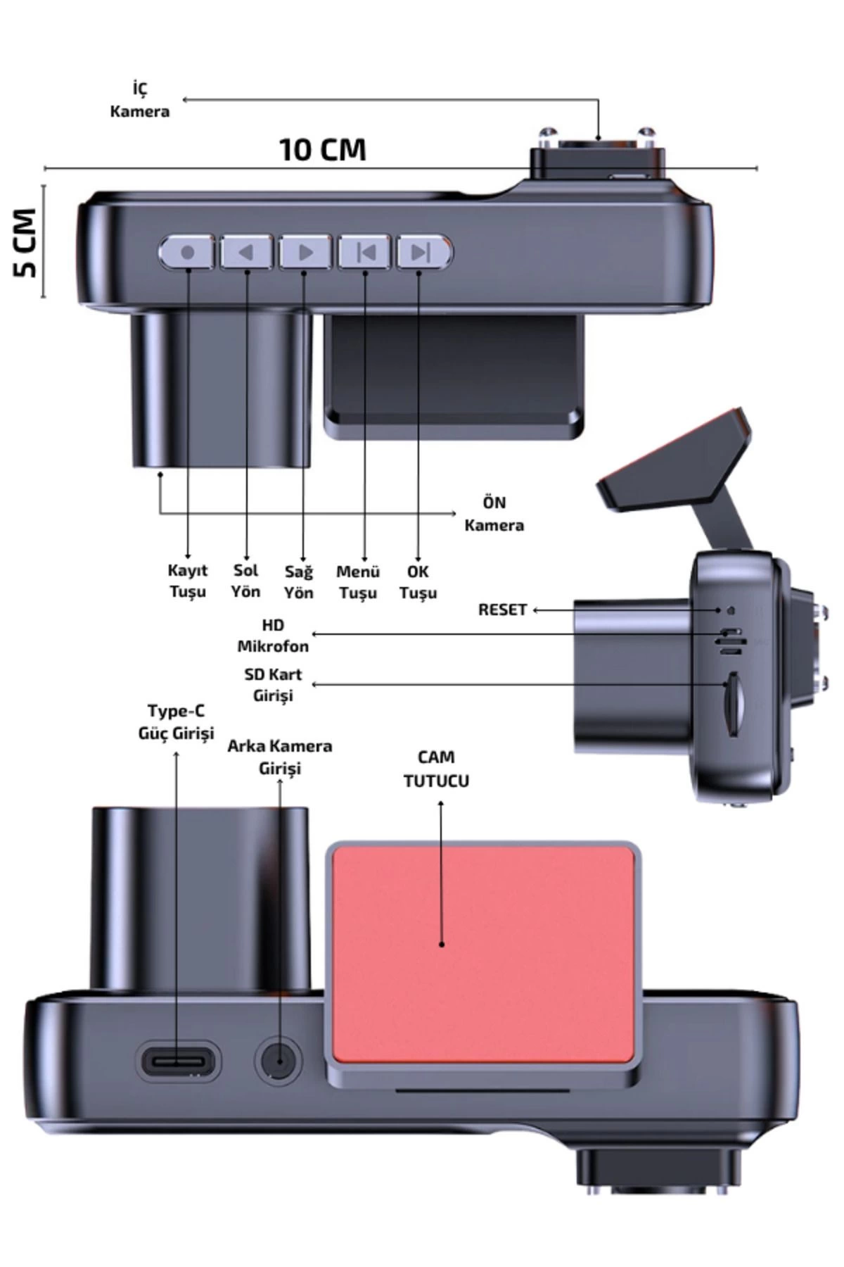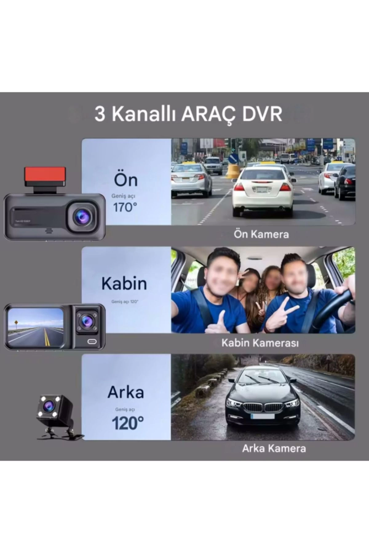 A98 Full Hd 3 Kameralı Araç Içi Güvenlik Kamerası 64gb Uyumlu Ir Gece Görüşü, Ön-arka-iç Kayıt