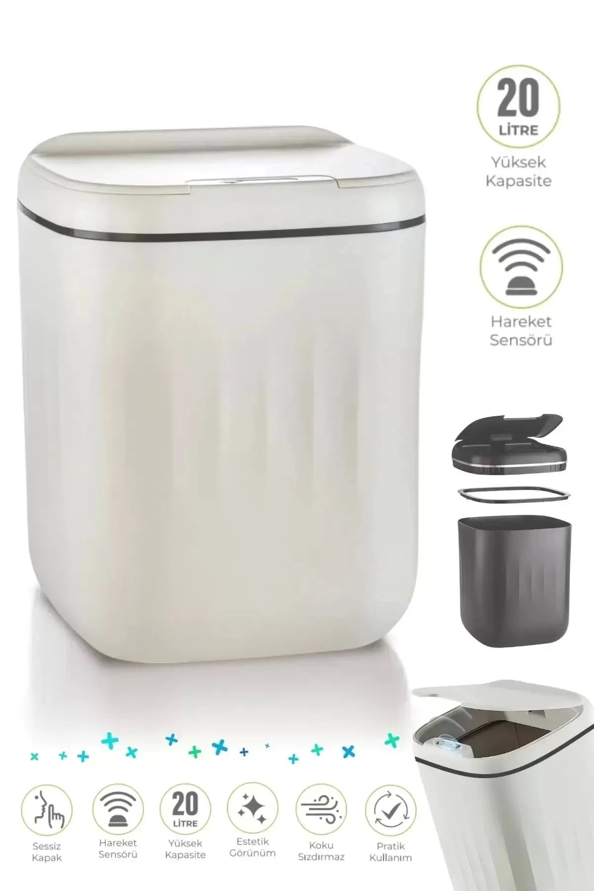 Akıllı Teknolojik Sensörlü Çöp Kovası Işık Antibakteriyel Koku Geçirmez Ofis Banyo Mutfak 20l Uv