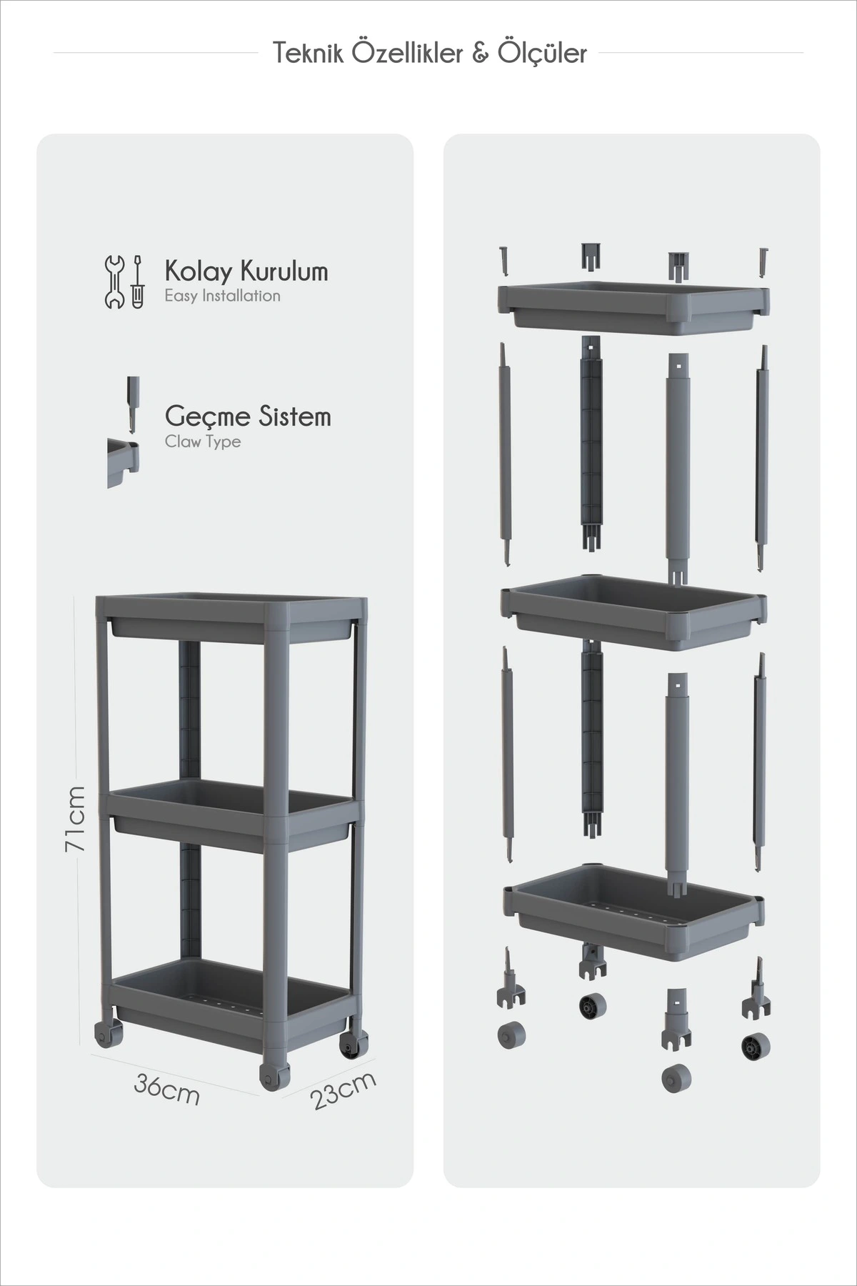 Çok Amaçlı Tekerlekli Raf Arabası – Dar Alanlar İçin Pratik Depolama Çözümü