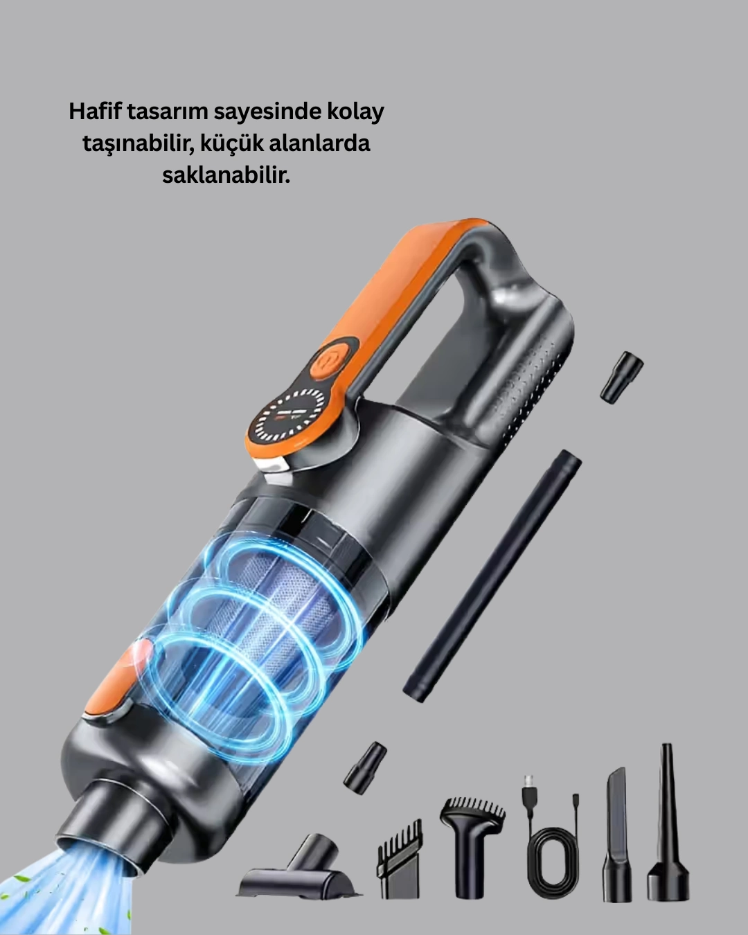 Kompakt Şarjlı El Süpürgesi Kuru ve Sıvı Temizlik 5 Aparatlı