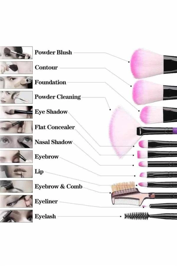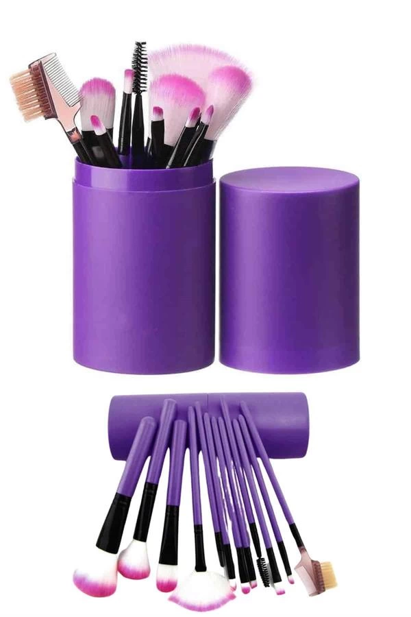 Makyaj Fırçası 12 Parça Set Yumuşak Uçlu Göz Makyajına Uygun Hafif ve Taşınabilir Çanta