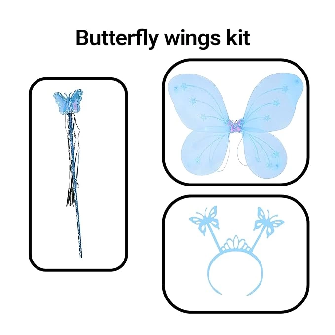 Mavi Kelebek Erkek-Kız Seti – 50 cm Kelebek Kanadı, Taç ve Asa
