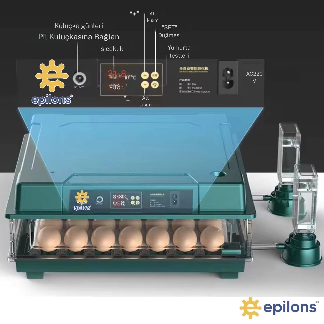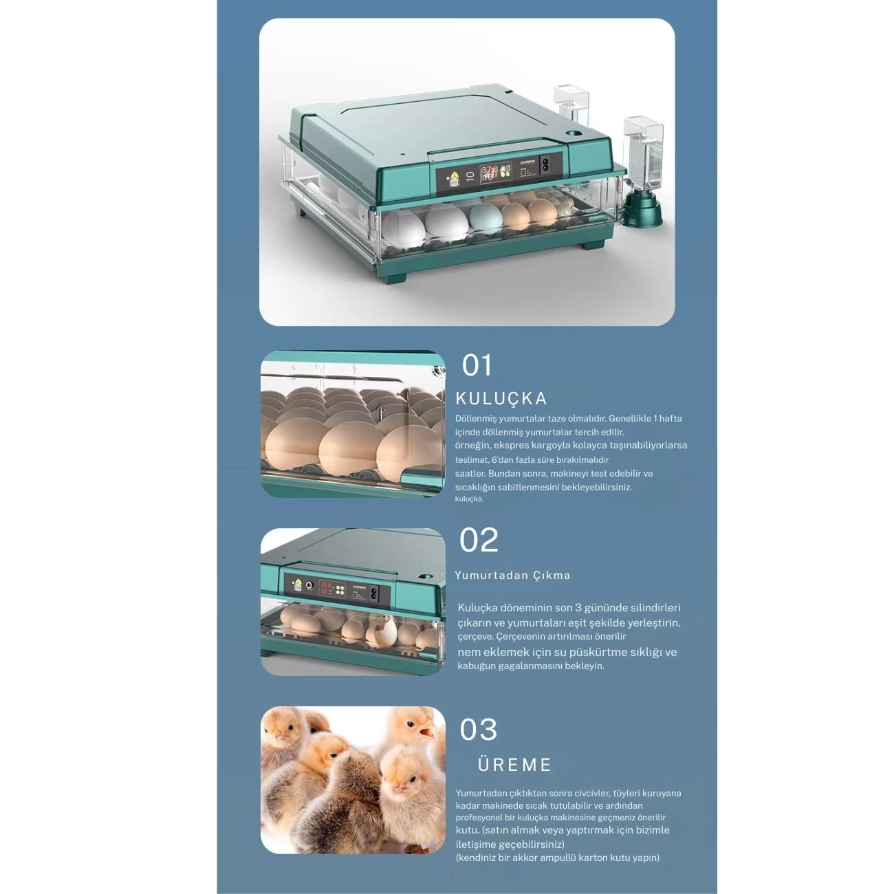 Slim Yeni Model 130’lu Gün Sayaçlı Otomatik Kuluçka Makinesi – Tavuk Kaz Ördek Kuş Yumurtası Uyumlu