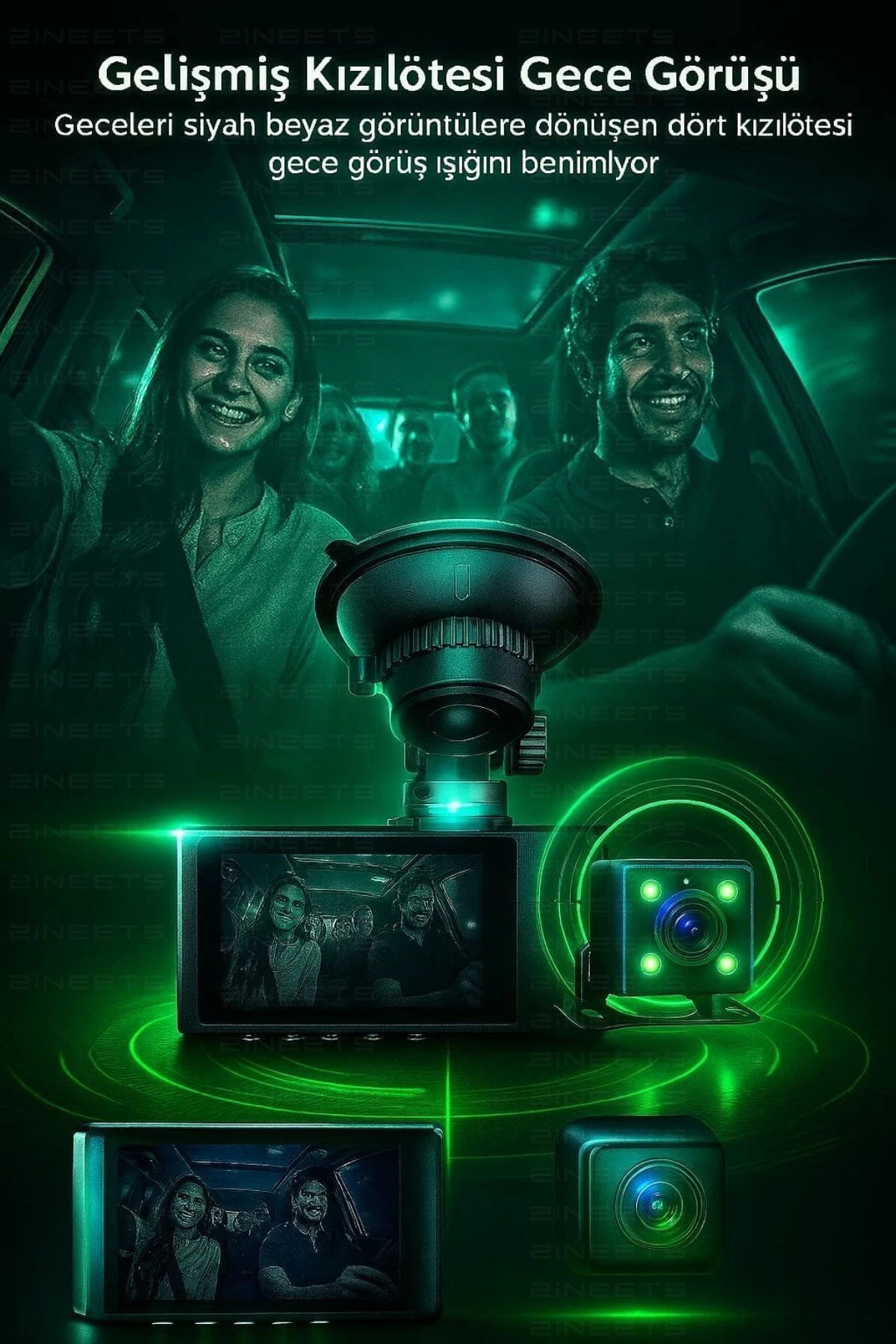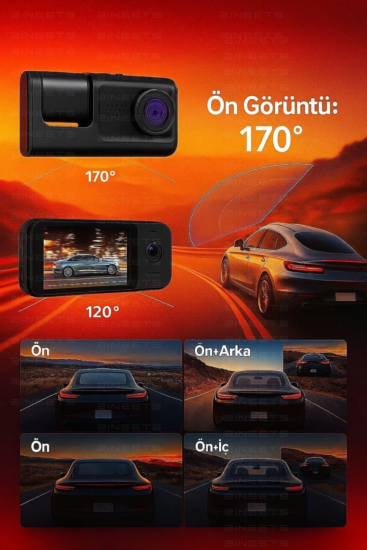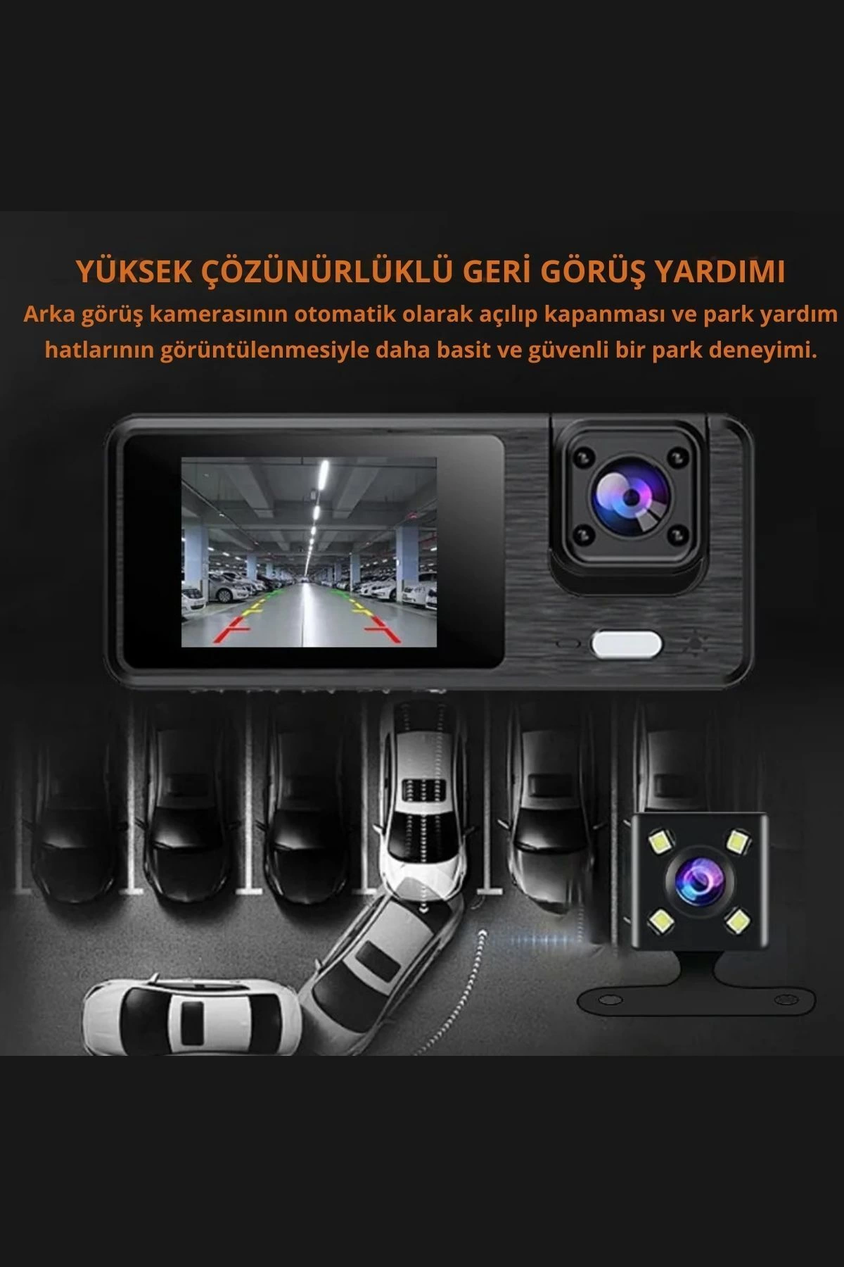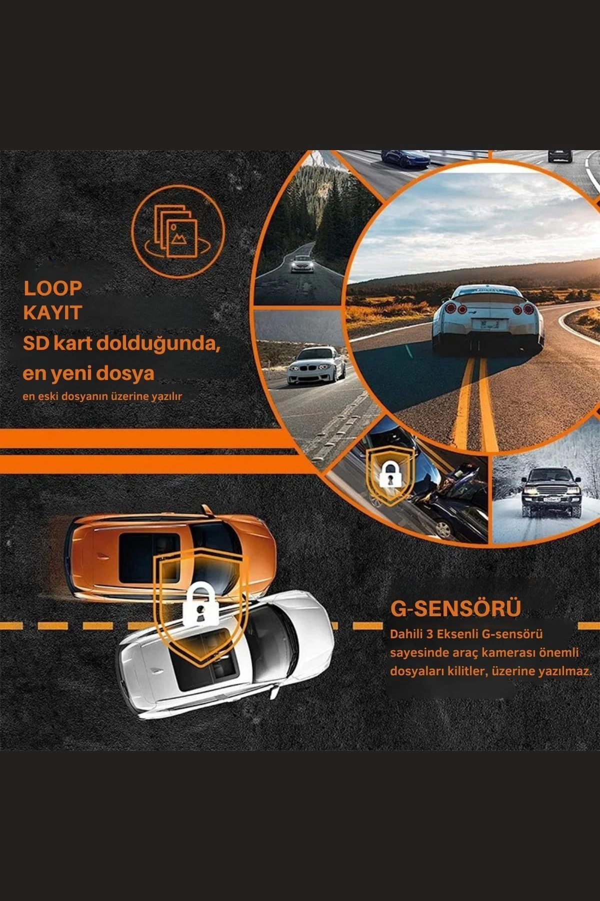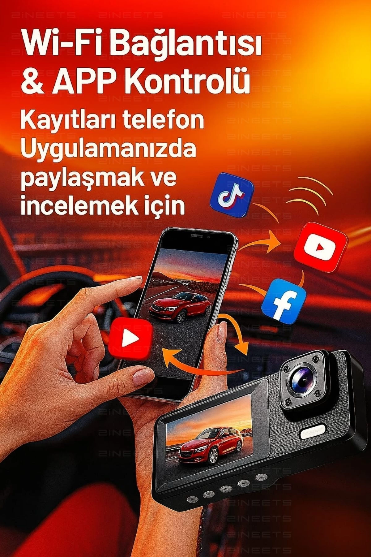 Wifi 1080p Araç içi 3 Kameralı Lcd Ekranlı Gece Görüşlü , G-sensör , Geri Görüş Kamera